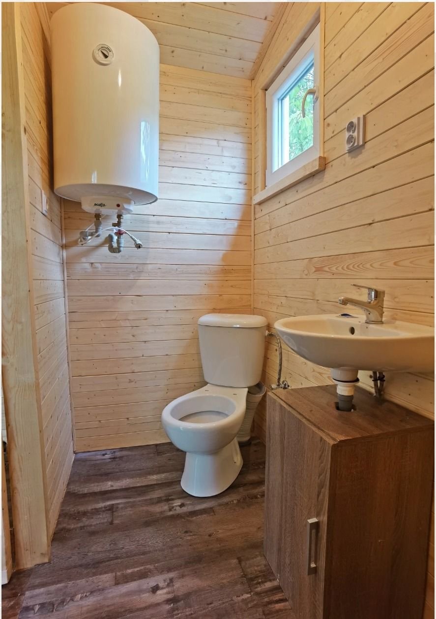 Elektřina: Zaveden proud 220V (7x zásuvka, 3x vnitřní světlo, 1x venkovní světlo). Instalace provedena kvalifikovaným elektrikářem dle norem.