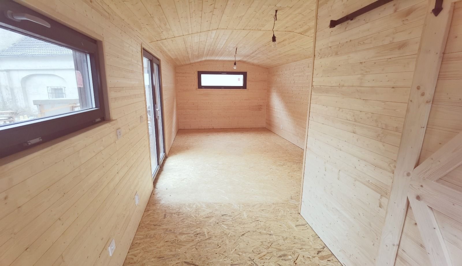 - Obklad exteriér/interiér: Smrkové palubky AB (12/15/19 mm) vč. ochranných nátěrů.